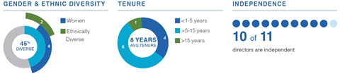 Over the last three years, the Board has appointed four new independent directors, further increasing its diversity based on race, gender and experience.